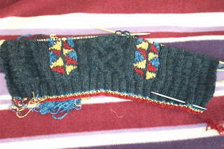 It's an Alice Starmore design from the Celtic Collection book (with modifications)- can't remember the name but I'll have to add it to my list on the UFO along. Still, the overall odds have to be good, I think that's four down off the list now!